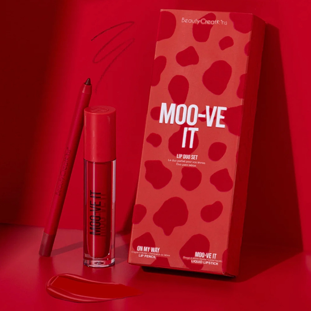 Contains a Lip Liner and Liquid Lipstick in shade ‘Moo-ve It’